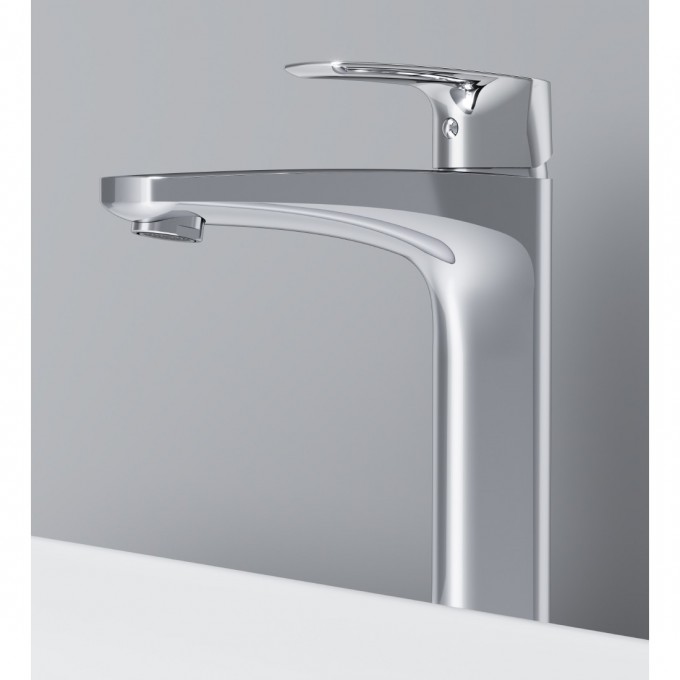 Высокий излив придает смесителю утонченный вид и идеально подойдет для раковины с глубокой чашей, а благодаря обширной зоне движения ручки управлять температурой воды еще проще.
